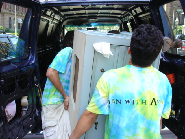 BLUE 10' CARGO VAN - Jesse and Saul moving a cabinet for Bela Sante Spa on Newbury Street.
