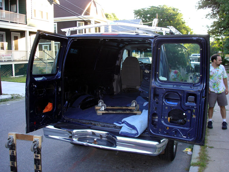 BLUE 10' CARGO VAN - Jesse and Saul moving a cabinet for Bela Sante Spa on Newbury Street.